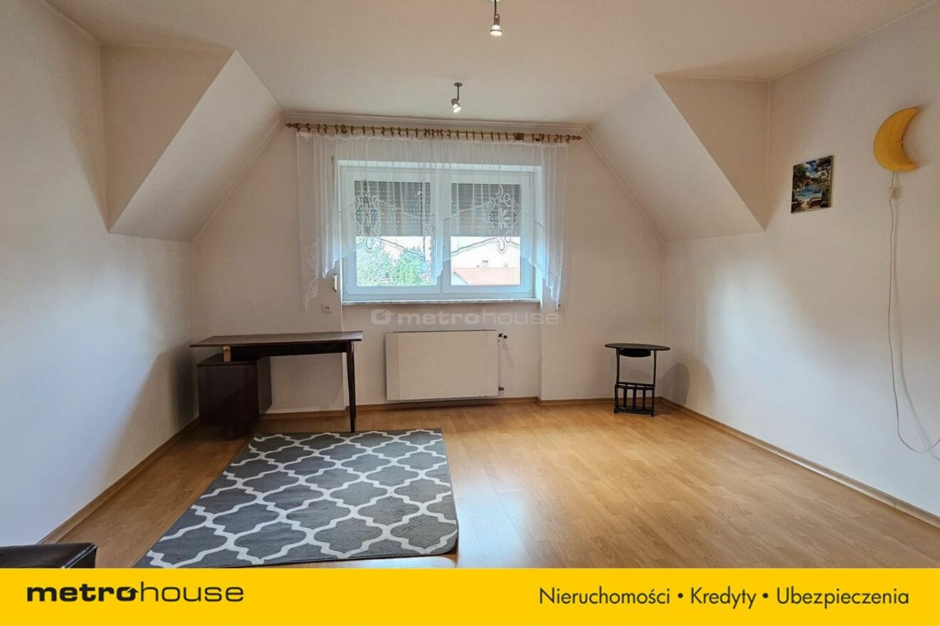 Na piętrze, na które prowadzi szeroka klatka, przestrzeń została zorganizowana tak jak w osobnym, zupełnie niezależnym mieszkaniu. Duża kuchnia, 2 pokoje z wyjściem na taras, nowowyremontowana łazienka oraz garderoba. Ta część domu może idealnie posłużyć jako moduł inwestycyjny i od razu może zostać wynajęta.